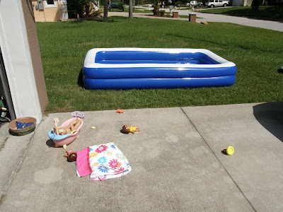 Today Derek and I both had projects to do outside, so we set up the pool and her baby bathtub for Aubrey to entertain herself.